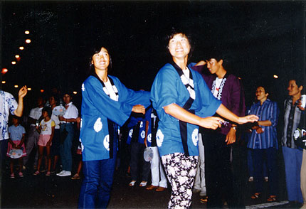 1984年から1992年まで開催された安比高原レディーストーナメントでの思い出であるが、ゴルフコースの一角に盆踊り会場が作られ、地元の人達と一緒に女子プロも参加してお祭りを盛り上げた。神田育ちの私は大のお祭り好き。貸してもらった揃いのハッピを着てすぐに仲の良い仲間と踊りの輪の中へ飛び込んだ。 真っ黒に日焼けした女子プロ達は、昼間の暑さを忘れ涼しい高原の夜を思い切り楽しんだのである。