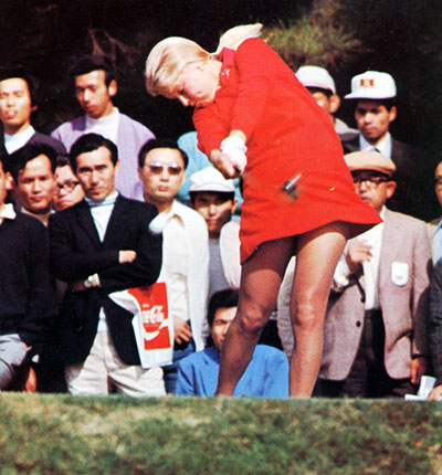 1973年「東海クラシック」にて ミニスカートでのプレーに見入る男性ファン |