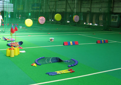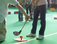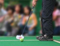 パター | このスナッグで10月の祝日、小学生対象に都内のテニスコート4面を使ってのイベントがあり、我が社ゴルフスタジアムのスタッフが10数名お手伝いに行った。 殆ど初めてゴルフをする子供達が午前、午後40名ずつ参加して行われ、各回4班に分かれそれぞれインストラクターから少し指導を受けたあとはすぐにゲームで楽しんだ。 最後には各班対抗のパット戦で大いに盛り上がり、大人顔負けの仲間へのアドバイスまで聞こえてきた。