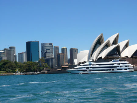 トーナメント会場のパーキング事情がわからないので、フェリーを乗り継いで行くことにした。当地では通勤にフェリーを使う人がいるくらい湾を利用し、多くのフェリーが行きかっている。そのお陰でシドニー湾に面している有名なオペラハウスをフェリーからカメラに収めることが出来た。