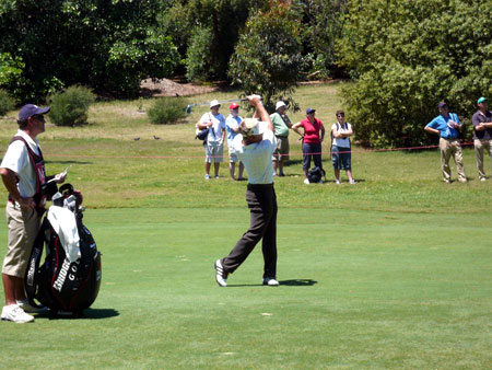 会場に入ると丁度最終組がスタートしているところだったがあまり知らないプレーヤーだったので、その一組先のスチュアート・アップルビーを見に行こうと追いかけた。