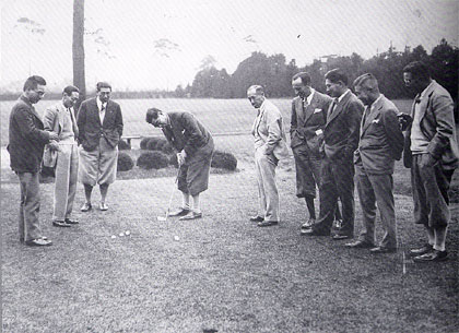東京ゴルフ倶楽部でのメンバー達(日本ゴルフ協会70年史より) パッティングをしているのは、赤星四郎、その左が赤星六郎 *