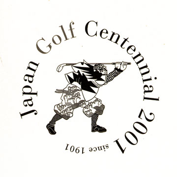初めて目にする方が殆どではないかと思うが、侍が刀ならずゴルフクラブを振りかざしている姿である。 2001年に「日本のゴルフ100年祭」が行われた時に使われたシンボルマークである。 この絵は1899年に英国のゴルフ誌「ゴルフ・イラストレーティッド」に、もし日本人がゴルフをしたらというイメージで掲載された戯画をアレンジしたものである。 日本にゴルフが誕生する前に日本人とゴルフが絵になっていたことは興味深い。
