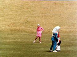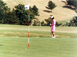 以前目にした素敵な紳士、某有名会社の社長で皇族の親戚にも当たるその人は、素振りから見てかなりの腕前、ルックスも良かった。 それはトーナメントの前日に行われるプロアマでのことだった。 一番ホールのティーショット、みんなが見守る中、打ったボールはヒールに当たり左前方にわずかに転がっただけであった。しかし、彼は悠然とティーを拾い照れもせず、余分なことを語ることなく何事もなかったように素敵なままであった。