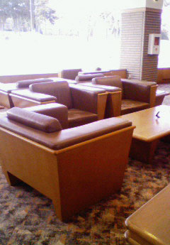 こういったソファが選手の通る所にあるとキャディが自然と集まってきます。